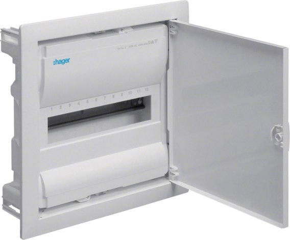 HAGER Rozdzielnica podtynkowa z drzwiami metalowymi, 1 rząd, 12 modułów, IP30, QC, HAGER Volta VU12AT