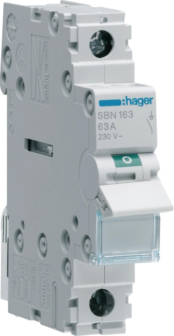 HAGER Rozłącznik izolacyjny, szer. 1 moduł. 1P, 63A HAGER SBN163