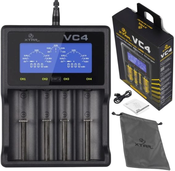 XTAR Ładowarka do akumulatorów cylindrycznych Li-ion / Ni-MH AA / AAA / 18650 Xtar VC4